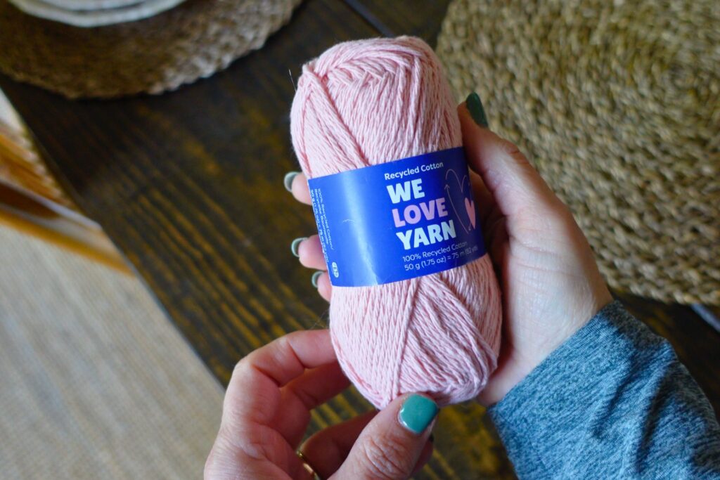 The next Hobbii yarn we are going to test is We Love Yarn Recycled Cotton. This is the color Rose and I paid $1.95 for this 50 gram/1.75 oz skein.