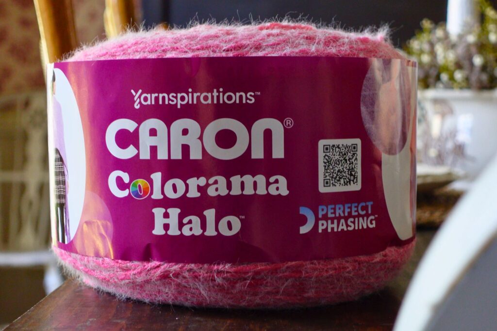 Caron Colorama Halo is a #5 bulky weight yarn known for it’s softness and gradual color gradient. It’s 71% acrylic, 18% nylon and 11% polyester. This is the color Pink Panther, which is the perfect name for it.