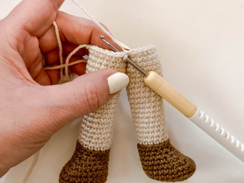 Round 31: Sc 2 times (or as many times as you need to get to the inside of Leg 2). (PHOTO 4)