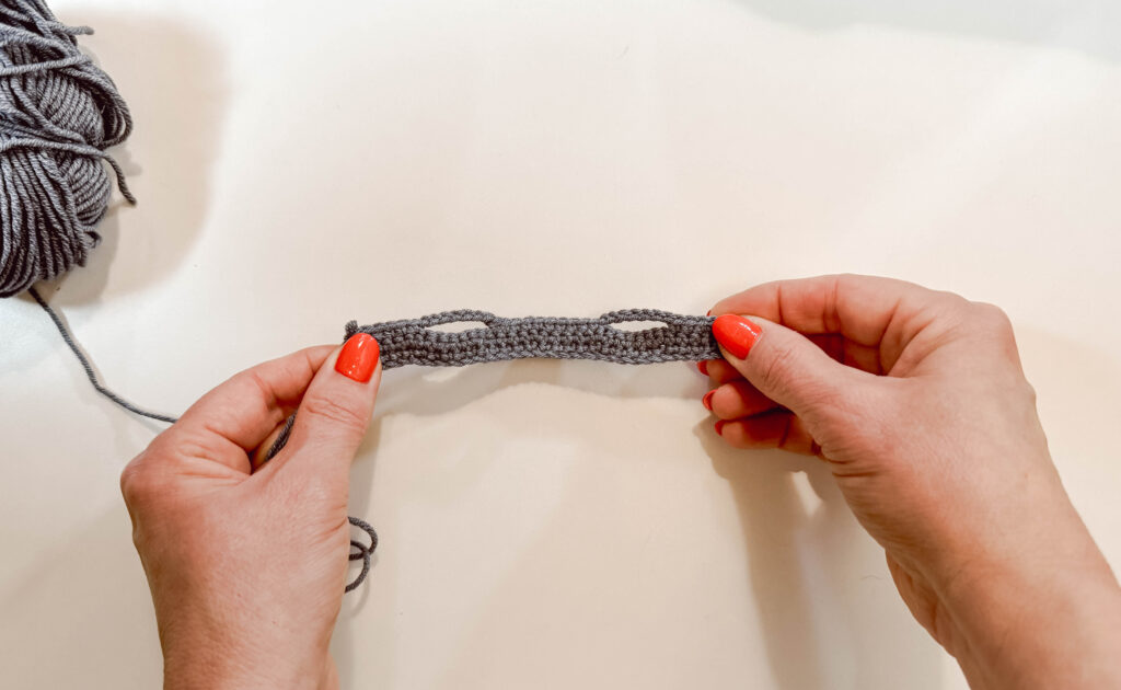 Row 1: in 2nd ch from hook, sc 30, ch1, turn [30]