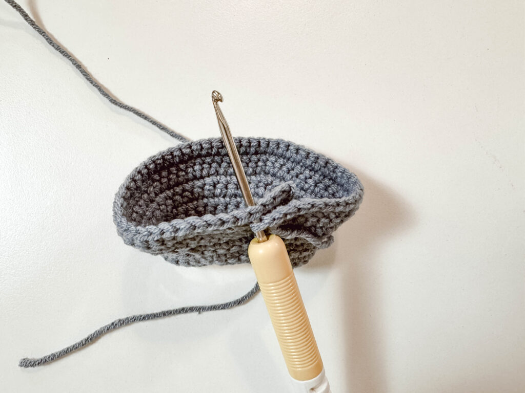 Fasten off, take needle through the FLO of each 6 st and pull tight to close, weave in ends.